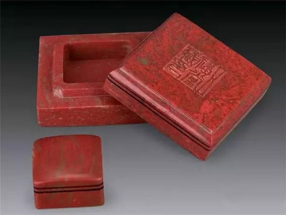 明代屠隆在《文房器具箋》中將印泥盒列為專項。印泥盒形式不一,以扁圓矮小者為常見,內盛印泥處十分平淺。所用材料有玉、石、竹、木、角、漆、金、銀、銅、鐵、象牙等多種,造型各异,雕琢精妙,可用可賞。前人有云:“印色池,唯瓷器最宜。若瓦器,耗油。铜锡有锈。玉与水晶及烧料俱有潮湿之弊,大害印色。近有以石为之,亦不适用。”