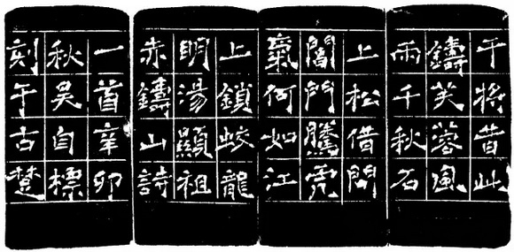 楷书款线条是由大小不等的三角形组成,除一些长横、撇、捺外用刀尖重压即可以。楷书刻法在我们创作中应用比较多,自由式章法比较简便又快捷。如要想刻出有六朝魏碑味道的楷书则就要注意用刀轻重、缓急和掌握魏碑的主要特征(见图12)。