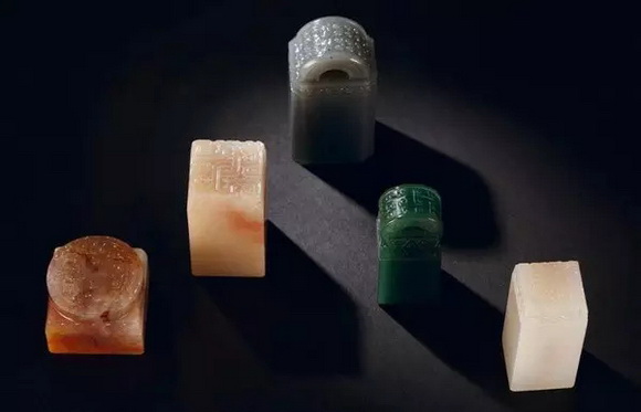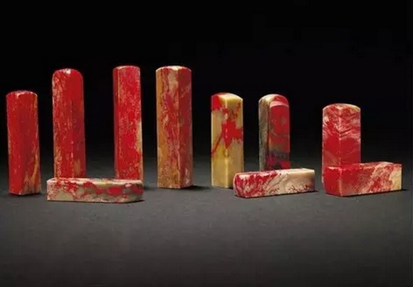 印章,古称「玺」,是一种凭证信物,在中国已有二千多年的历史,至今仍普遍使用。宋元以前,印章材料多以金、玉、铜、象牙为主,相传王冕以「花乳石」入印,开石印先河。而真正让石材在印坛广泛使用并大放异彩的当数明代文彭,他在偶然中发现质似玉珉而松嫩如石膏的「处州灯光冻」,倡导了洁莹易刻的石印,之後文人治印风气大兴,冲击并替代了传统的金玉印材,而素为印人称道并乐于奏刀的印石三宝乃是田黄石、鸡血石、芙蓉石。