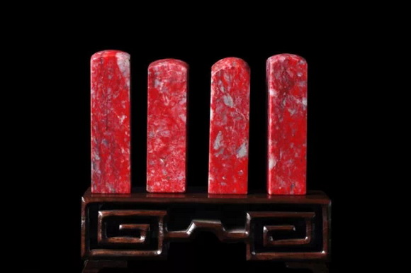鸡血石是辰砂条带的地开石,其颜色比朱砂还鲜红。因为它的颜色像鸡血一样鲜红,所以人们俗称鸡血石。我国最早发现的鸡血石是浙江昌化玉岩山鸡血石。后来又发现了内蒙古赤峰市巴林右旗的巴林鸡血石。20世纪90年代又在陕西、甘肃、四川、湖南、云南等地发现了鸡血石。由于现在的昌化朱砂(汞矿)已近尾声,所以出产的鸡血石产量相当有限,市场价格日增不衰。因此鸡血石跻身“印石三宝”的行列,被誉为“石中珍宝”。