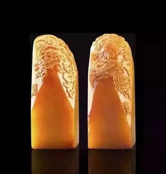 这对龙凤章成章于康熙五十八年,至今近三百年的历史。康熙年之后,田黄的储量已经大幅减少。经历三百年时间,田黄的储量日益稀缺,如今已到了水枪冲筛也难以找到大料的地步。