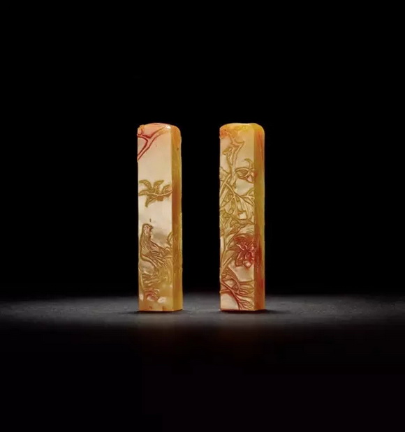 对章难度高,一个是材料难,需要够大的材料对切。不容易。另外一个是工艺难。薄意、浅浮雕需要两方呼应。钮头更难,另外一方需要反方向无论高度,形状大小相同。这需要非常深的功力。所以对章很难见到。