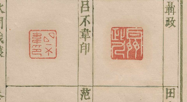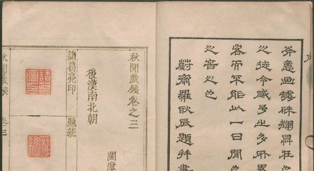 此印谱《秋闲戏铁》为明末清初篆刻家严乘、罗公权篆辑,全书共10卷(严乘摹辑8卷,附罗公权续2卷)。此谱摹刻何通《印史》所钤印八百三十方。又增明印一百八十方,附加私印、亲友印二百三十余方。此本大致为清雍正4年(1726)朱绿套印本。