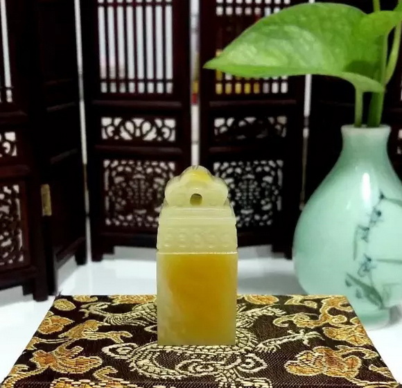(3)至后来,皇帝黄袍加身,黄色成了至尊色彩,代表着权威、富贵、高端大气。而菜花青田印石色之黄,恰是满足与适合了中华民族黄色崇拜与黄色情结的需要。历久弥艳的特性,更是给藏玩者带来意外的惊喜。