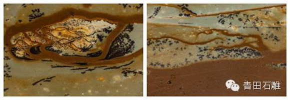 这一组影像,展现的是青田石的表面纹理。这些纹理色泽丰富,形态多样,十分神奇,令人不得不感叹大自然的鬼斧神工。