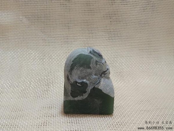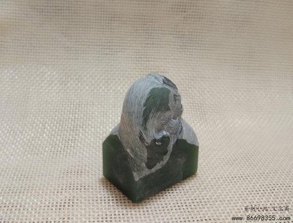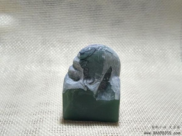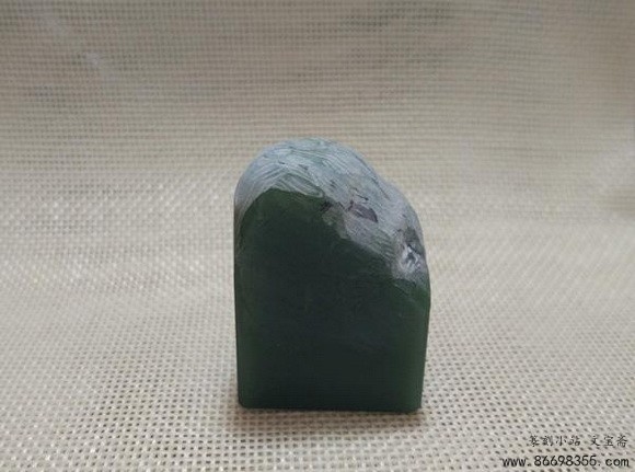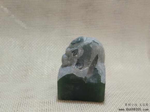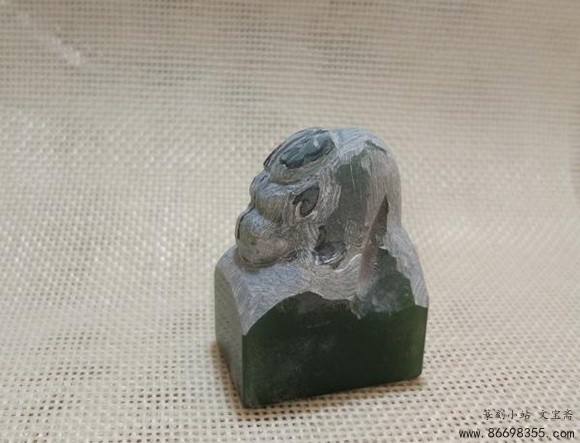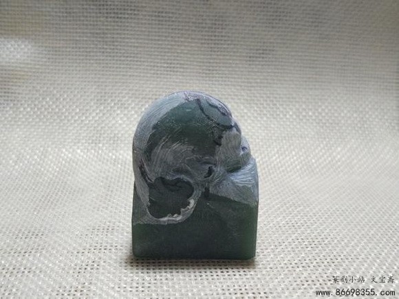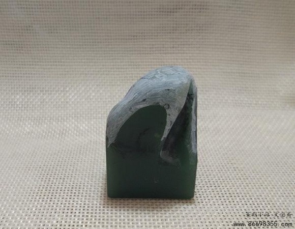 西安绿石,产自陕西商南,色正浓郁,呈半透明或微透明状。用于石刻时易于奏刀。这种石头产量较少,已知矿洞产业已枯竭。原石多是格裂、膏杂,原石能够取出的三无(无格,无裂,无杂)印章,基本概率不足百分之一。(见图1-2)