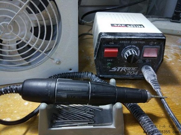 这里开始用到雕刻机,利用各种尺寸的金刚砂磨头完成。(见图5-7)