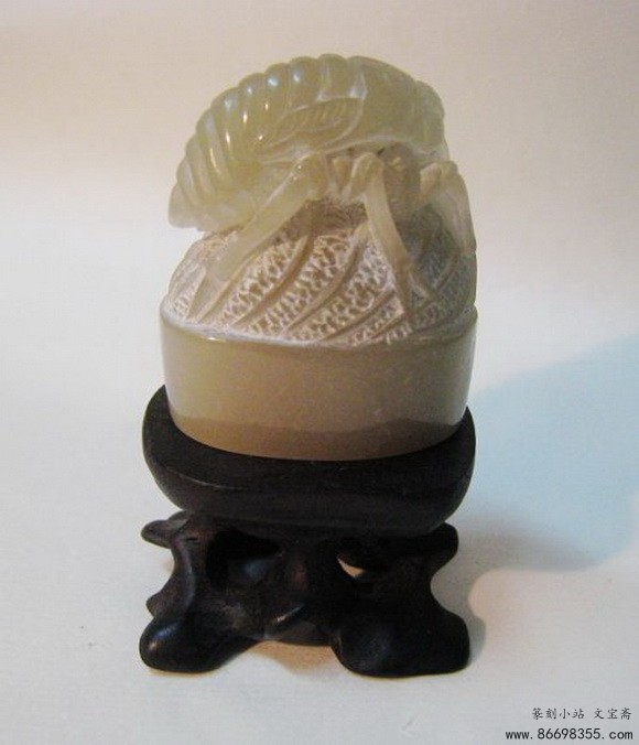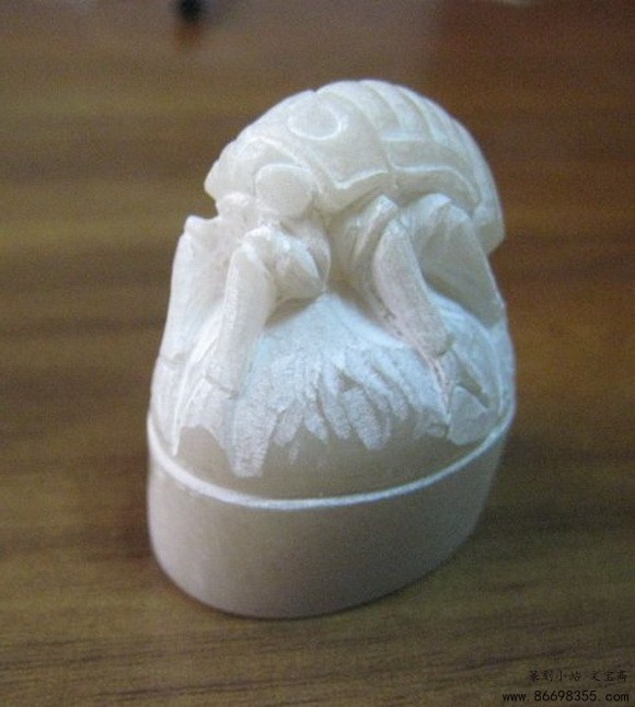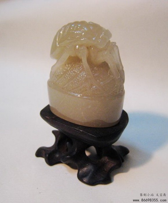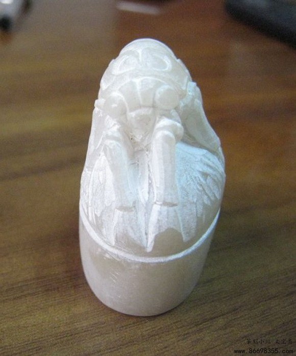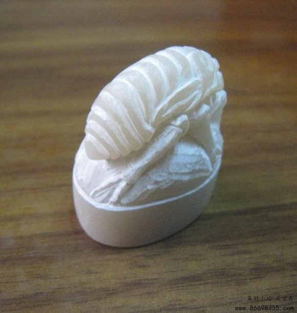 辽冻石随形印章变形计,蝉虫印钮雕钮全过程图解之蜕变 一枚随形章料(辽冻),十多年前所得,通体无丝裂,印面约3.5*2.2MM,高5.5MM。动刀前先将随形印面整成土圆形印面,顶部根据石形雕成蝉虫状,由于顶部呈土圆形,无法雕整蝉,故做一蜕变前蝉虫,下为一叶,取名为<蜕变>。现将雕钮过程照片发上,以博同道一笑。 印谱.教程.技法 - 分享 加微信获取:wenbaozhai365