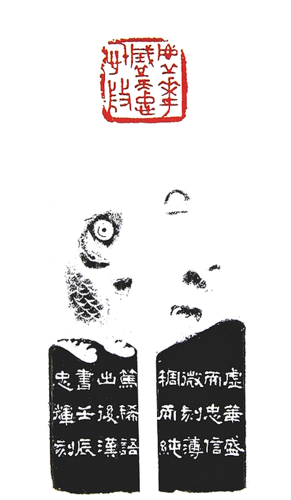 25 虚华盛而忠信微 选字高古,有钟鼎铸铜之气韵,文义内涵深刻,印面大方稳重,但也略偏于生僻而一般群众难于辨认。在旁款中加以简单说明,也算一个办法。