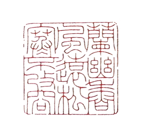 8,冷香飞上诗句 梦魂欲渡苍茫 12字三列成正方印,字形优雅隽秀,笔划方圆兼顾,间距均衡,平划微微上拱,字间无间隙而多连缀,整个印面工稳俊雅,气象和顺,也是一件典型的元朱文印的好作品。