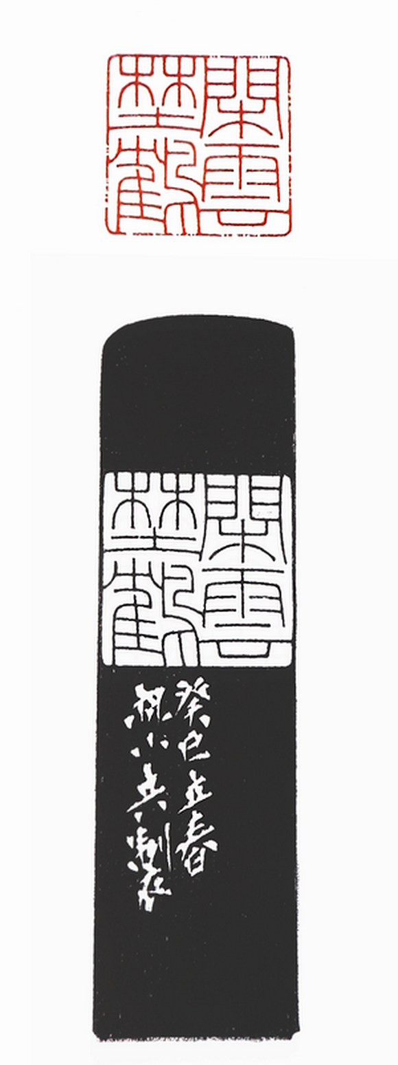16, 闲云野鹤 四字正方,字体工稳娴静,笔划方圆结合,字间左右无间隙有连缀,印面有文雅书生气,是一枚较好的细朱文印。旁款与印面完全一样,也是一种趣向。