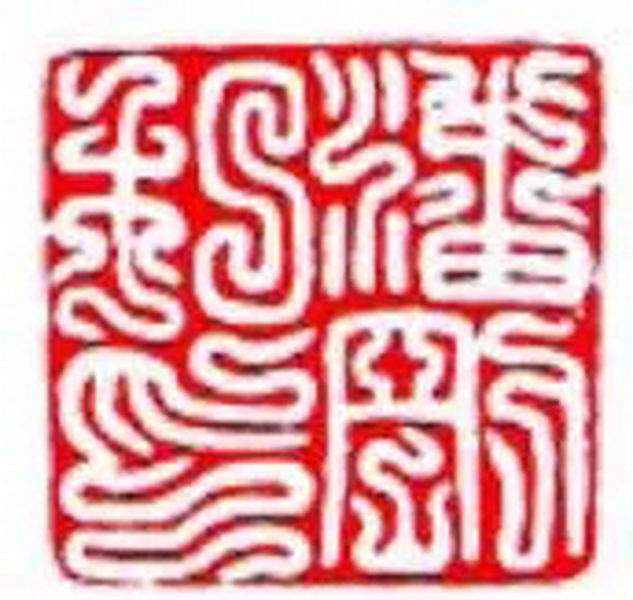 鸟虫篆印在构图上能利用简繁的处理,体现出主次感和虚实感,这种不平均的笔画安排,使印面疏密对比,变化多端,顿生情趣。为了保持全印的匀称,作者对文字较繁者尽量简化装饰,而对笔画较简的字反复装饰、盘曲,其中对留空的填补最见功力。一字中如此,在一印中也是这样。比如“潘刚私印”一印,每一个字的盘曲补空都很合理。正因为合理,其反复盘曲才不觉过分。