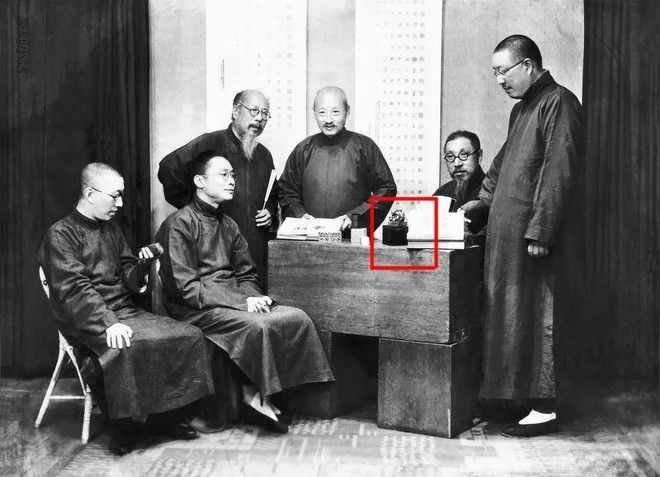 这方印章被葛昌楹用在很多重要的地方,印谱上、活动上都能见到踪迹;拍摄于1939年的照片上,俞人萃、葛昌楹、王福厂、丁仁、高野侯、高络园几人围桌雅集,桌子中间放着的,正是这方“传朴堂”大印。
