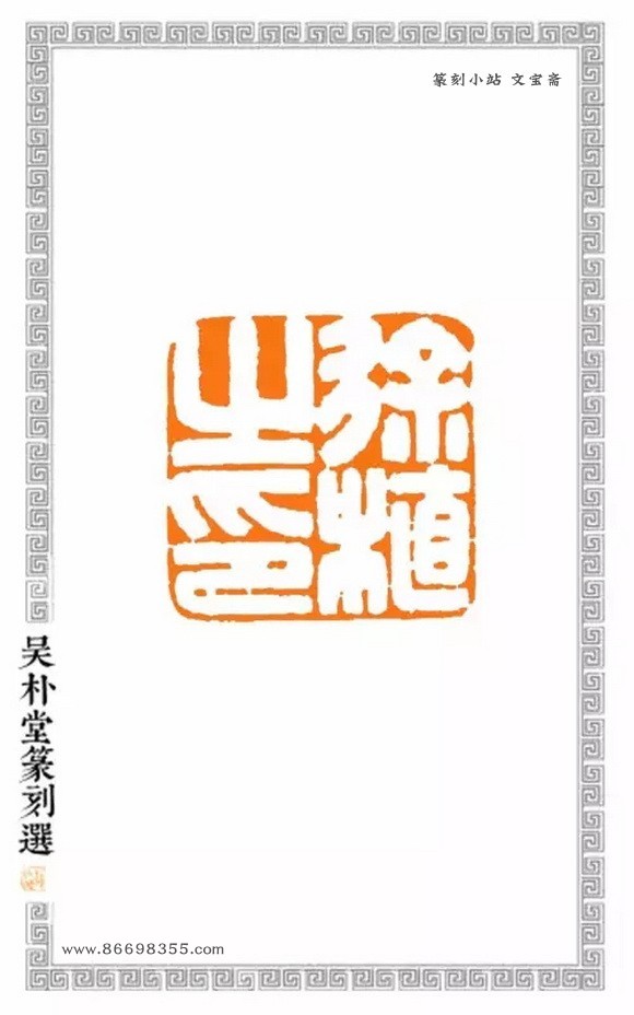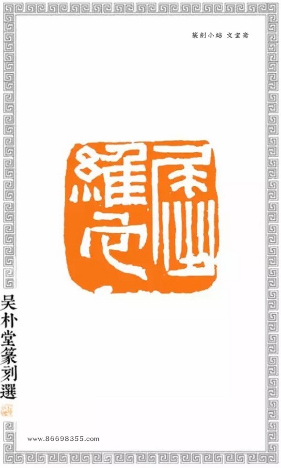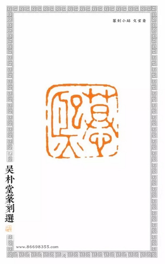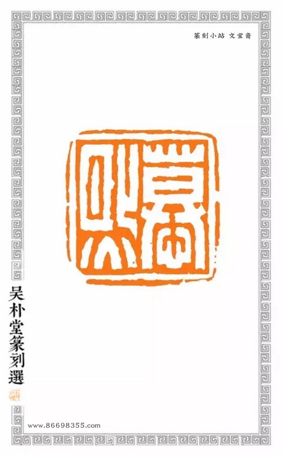 吴朴堂之印纯出传统,秀雅、整饬如其人。他对古玺较着意,尤其一种粗边细文之小型古玺,曾费两年之工,收集、遴选并临刻四百万辑成《小玺汇存》四卷。梓行以后,颇得印学界赞誉。其摹刻之精,气韵之佳,置古谱中难辨真伪矣。