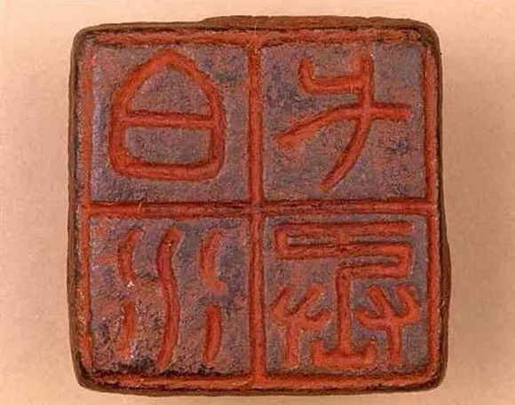 十方汉印带你领略篆刻之美,篆刻小站带你篆刻带你飞 十、“白水弋丞”印 铜蛇纽“白水弋丞”印,印面边长2.5cm,印台厚0.6cm。印铜铸,方形,蛇纽。印面有阴线十字界格。印文保留有秦篆风格,白文,两竖行排列,右上起顺读“白水弋丞”四字。此印是武帝太初元年(公元前104年)以前之官印,尚有秦官印遗风。 页码: 页 1, 页 2, 页 3, 页 4, 页 5, 页 6, 页 7, 页 8, 页 9, 页 10 印谱.教程.技法 - 分享 加微信获取:wenbaozhai365