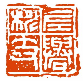 清代篆刻家黄牧甫的篆刻看似与秦印风格不合拍,但他对秦界格印式创作有着自己的独到见解。“其白文印‘寄庵’(图24)线条极见功力,即整饬又恣肆。这二者本来是相互矛盾的,但在黄牧甫手里竟能兼得。整饬在形,在于用刀;恣肆为骨,在于结字。‘日’字界格按照常见的样式根据印文笔画的繁简进行空间划分,‘寄’字方正居中,而庵字向右偏移,左边留空,加之‘庵’字上部紧收使之左右自然留白,‘庵’字透露出平中求变的讯息。‘日’字界格中间一横线,为了避免呆滞,与右竖格线在交接时稍稍冲出一点点,煞是精妙,在不动声色中完成整印。又如黄牧甫仿秦印中的圆形界格印创作的两方‘崇徽’(图25),圆形印的文字随行布局,又有自己个人的一贯风格,二者怎样调和是关键所在。黄牧甫运用了一静一动的处理方式,‘崇’在两印中都比较端正,只有在‘徽’字上做文章,让其既保留自己的一贯印风,又要符合印章形式的的特殊性,使二者有机的结合起来。两印非常成功,既有黄氏风格又有秦印古趣”。 [1]
