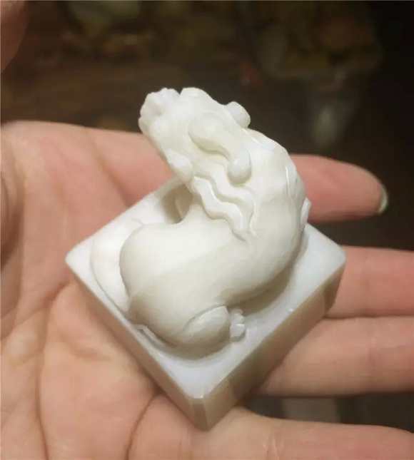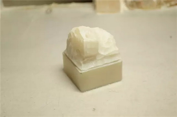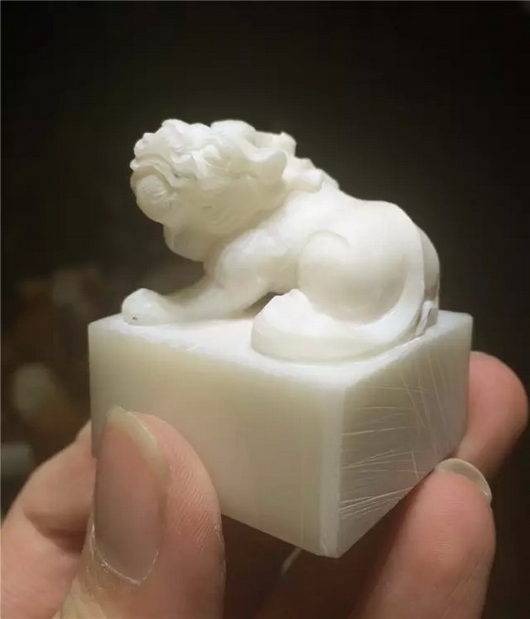 篆刻小站某大师的手速很快,不到20分钟,已经车出一个古兽的胚子