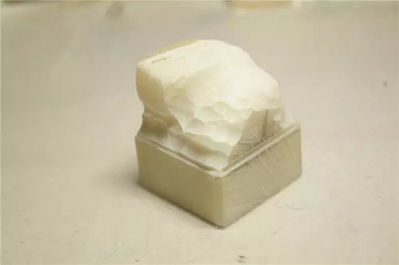 用力下压,就可车掉多余的石材,线条就开始显现