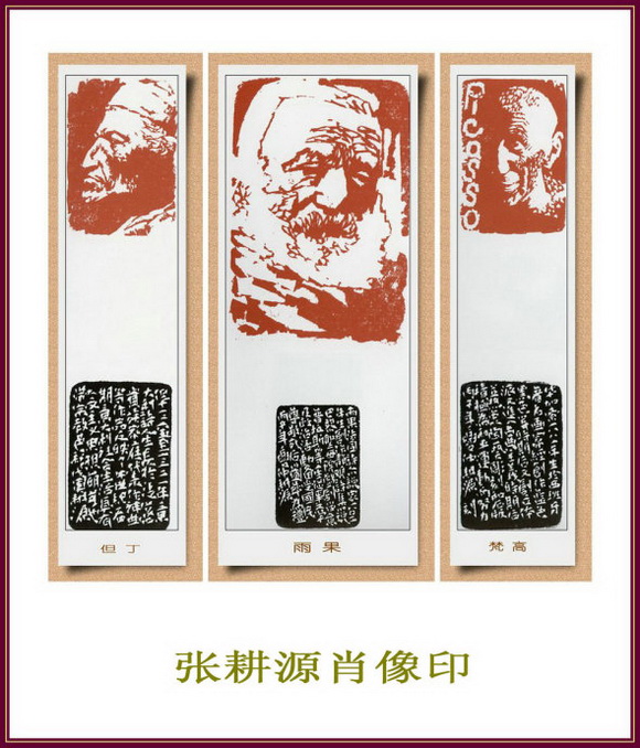 肖像印领军人物,刀耕笔刻,张耕源篆刻名人肖像作品赏 肖像印,以“肖”名人之“像”为最难。名人面像为世人所识,如刻得不像,或神采不及,难免遭人垢病。张耕源却迎难而上,为名人造像胸有成竹。张耕源创作的名人肖像系列作品,形式新颖别致,人物生动传神,技法细腻严谨,熔书法、金石、素描、版画各种艺术于一体,洋洋大观,寓神于形,技法老到,刻划入微,令人叹为观止,其艺术性达到了巅峰水平。 页码: 页 1, 页 2 印谱.教程.技法 - 分享 加微信获取:wenbaozhai365