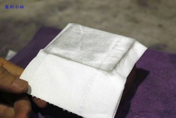 第七步:附上纸巾,用掌心用里按压纸巾,吸走多余水分。