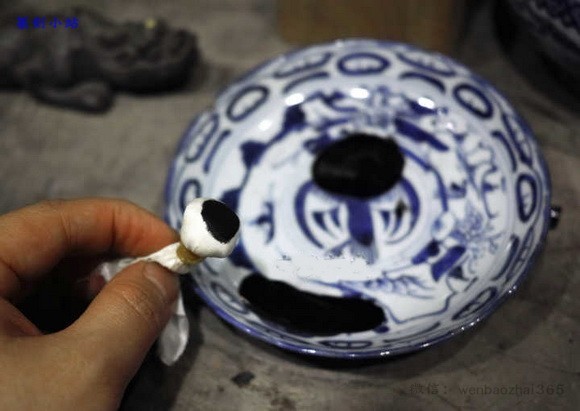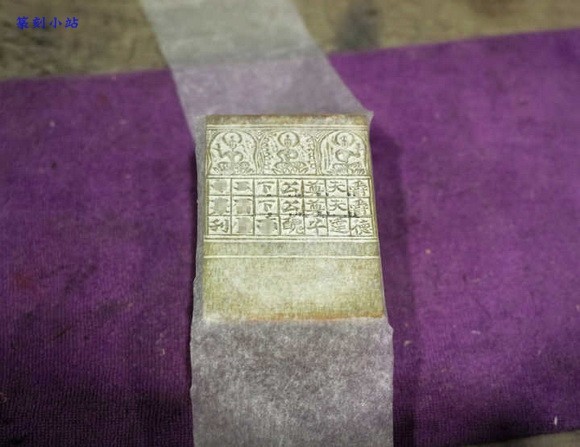 第十步:用搨包蘸墨适量墨水,上石搨、擦、压,这个量没有绝对合适的量,乌金拓就需要个人勤加练习,总结个人经验了。