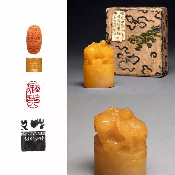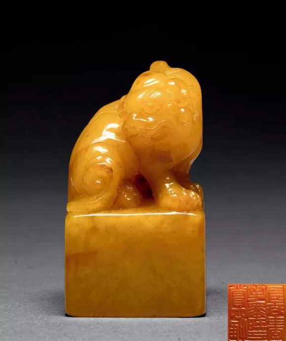 田黄切章,再不计工料地雕刻印钮,这当然不是因为古人没有惜物之心,因为究其原因,乃是因为在当时,寿山石的开采本来就是为了满足篆刻的需求,切石成章是最为正常的事;而且也只有印章这种形制,能代表最为纯正、最为高级的文人趣味。故而田黄印钮雕刻艺术的最高峰,自然也只能出现在那个时代之中。