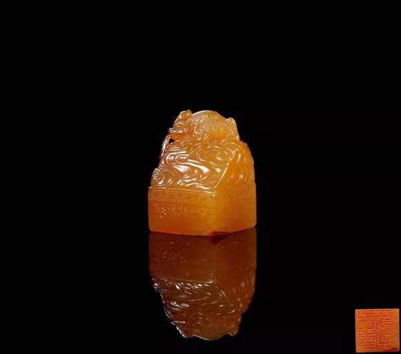 Lot 5719 胡匊邻 田黄冻三足金蟾钮印章