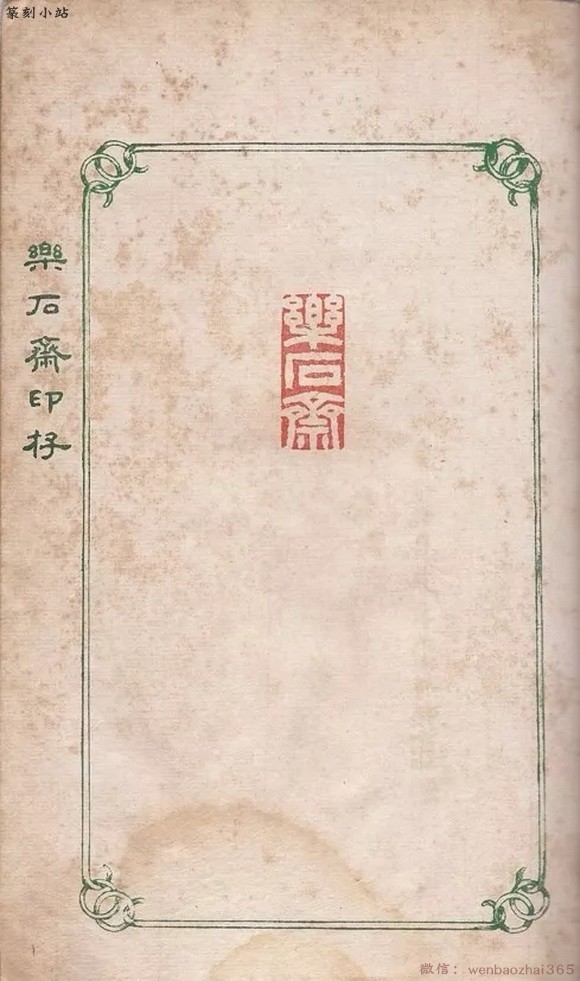 “环扣纹”寓意是纵横交错,“环扣纹”作为印谱版框纹饰是清末以后的事,此前甚少见到,文人篆刻家将“环扣纹”入印谱版框中,其意为篆刻一技是环环相扣,不论文字学、考据学、版本学、书、诗、画等等,必须各方面兼通。“如意结”是传说中之灵芝,为长生不老之药,乃吉祥瑞草,《凤山楼印志》一谱,就是采用“环扣纹”加上“如意结”作点缀,寓意为结识或结合,或寓意吉祥如意。《蔬笋馆印存》《张如忭印存》《乐石斋印存》也采用“环扣纹”作为印谱版框纹饰,足见印谱编辑者于设计上巧见心思。