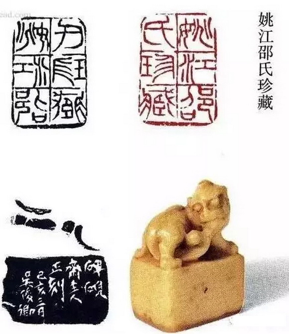 然而,铁笔的“书写”(即奏刀)究不同于毛笔的书写。毛笔的书写可以一气呵成,是一度的书写。铁笔的“书写”之前,先须有毛笔的书写(起稿、上石),“印不论大小、繁简,都要经过深思熟虑,反复写稿。……不写而刻,或写得很随便的,只能在字较少,又不很难,技法很熟练的情形下,可能出现好作品。”(徐无闻)所以是两度的书写。对于篆刻,第一度书写固然重要,第二度书写尤其重要。印章之失,或失于第一度书写,或失于第二度书写,习印者不可不知。