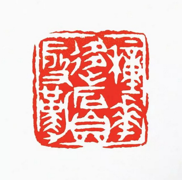 印章边栏的设置;明代篆刻理论家徐上达在《印法参同》说的明白:“印有边栏犹家之有墙垣,所以合好覆恶也。然亦有门户自在,无借墙垣者,顾其可合可覆何如耳。朱文虚起非边栏无所附着。若白文,有红地相依则相字势,外有曲折周回自相约束者,不更用栏。他如窥见室家,出头露面此则不可无栏。”即,朱文印必须有边栏,不然的话你的家室就一览无余了。白文印,可借红地为边栏,亦可另设边栏。一般而言,无论是白文还是朱文底边要宽于其他三边,用以体现地基的稳固,随形印、圆形印亦可一侧略宽。一定要避免顶边过宽,不然就显得头重脚轻了,亦可选择左下或右下边宽于另两边的设置,但,甲骨文、金文、古鉨印四边可以等宽,而且多为宽边小印。