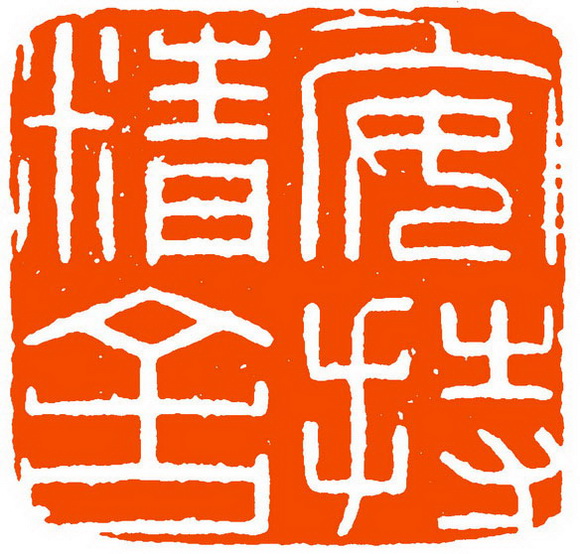 印章边栏的残破有一个要注意的,就是残破必须弄得自然,是人为的,但尽可能做到不像人为的,而像是自然形成的。边栏的残烂是一个“营造”的过程,必须心中有一个大概的计划,比较复杂的应该在打稿时就要考虑,然后各种手段综合使用,必要时反复加工。不要盲目完全凭“偶然性”去达到效果。
