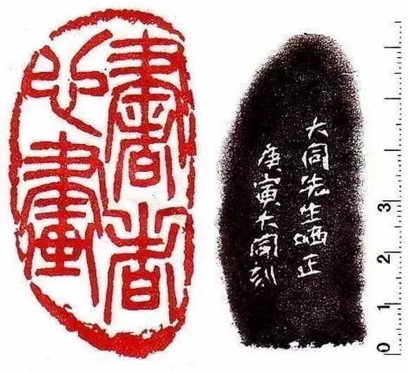 5、模仿封泥效果以及其他特殊效果。封泥原指封针竹简的泥团,古人在上面钤压了白文印的印痕,变成像朱文一样的凸字,仿封泥印章实际上是模仿拓片而刻的印。因为是泥的拓片,所以边缘呈斑斓状、不整齐的随意形。在刻制仿封泥印时有意模仿边缘的斑斓。