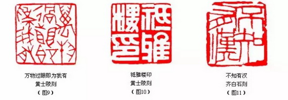 综合以上篆刻大师的创作来看,相互间或有声息相通之处,或有借鉴传承之处,或有默契之情,但对照各人创作,皆以特立独行的风格面目展现给世人,根本上取决于创作中的自我意识。反观当代印坛,盲目跟风,丧失自我意识,就没有打造自我印风的先决条件,这是当代印坛缺乏大师的根本原因。