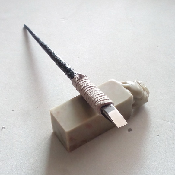 锻打陨坑篆刻刀,匠人纯手工锻打石刻刀,双坡平口刻刀 古今制印刀者多为匠人,不通书道印法,只求钢硬锋锐,既粗且笨。文宝斋锻打手工篆刻刀专为印人设计,选料、锻炼、淬火、打磨皆一人为之,每把均为孤品。 陨坑锻打篆刻刀,陨坑防滑设计,钢口锐利吃石,用其所用,手感上好得力,木箱盒装,自用或送人甚佳。 手感贴合,浑然天成,出刀沉稳,入石爽脆,印刀五德“坚、韧、利、稳、雅”皆备之,其手工印刀在圈内久负盛名。 印谱.教程.技法 - 分享 加微信获取:wenbaozhai365