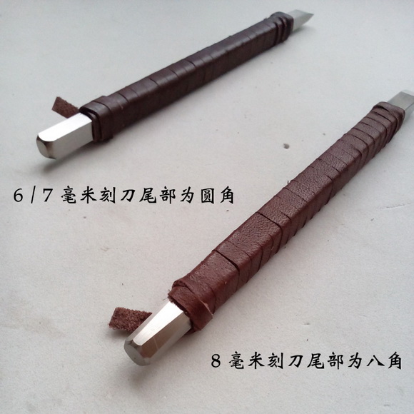 自制满白文白钢刻刀刻铜錾子,超硬手工篆刻刀,刻石刀 工欲善其事,必先利其器。文宝斋高级篆刻刀龙吟B系列选用整条方形进口白钢手工冷作,精磨刀头,锋利耐用,皮条缠柄,手感舒适,轻松搞定各类印章石材,适合汉印、齐派、浙派类印风的篆刻,也可用于铜印章的篆刻。方杆,全长158mm,双阶平口中间刃,6毫米、7毫米、8毫米多种尺寸可选! 印谱.教程.技法 - 分享 加微信获取:wenbaozhai365