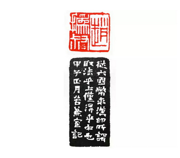 “由宋元刻法直追秦汉篆书”,他从宋元直追秦汉,此外,他对于各种尝试都在他的边款里做了记录,这样的边款记录多到数不胜数,甚至他最重要的篆刻艺术见解也出自他的边款,比如: