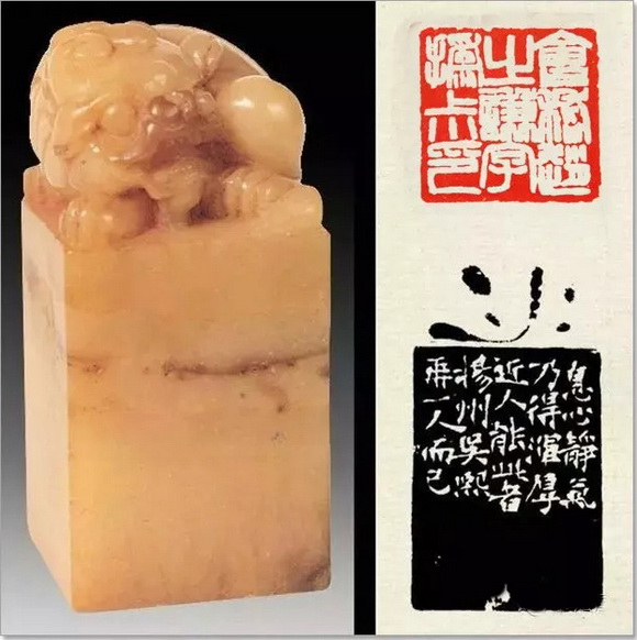 这可能是他最重要的篆刻理论,他追求的篆刻最高境界是“有笔有墨,有刀有石”,强调有笔有墨,追求刀法与笔墨趣味的统一,要求刚健浑朴和酣畅灵动并存,他自己也在艺术实践中不断向这个方向努力,但也大部分时间是“心手左”的,他也觉得自己的认识到了,有时也刻不出来,他评论天下印人,但似乎都不放在眼里,他的篆刻理论,从此有了划时代的意义。