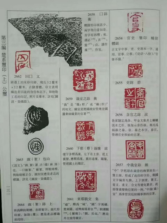 第三编楚系玺印 (上)公玺;(中)私玺;(下)成语玺;