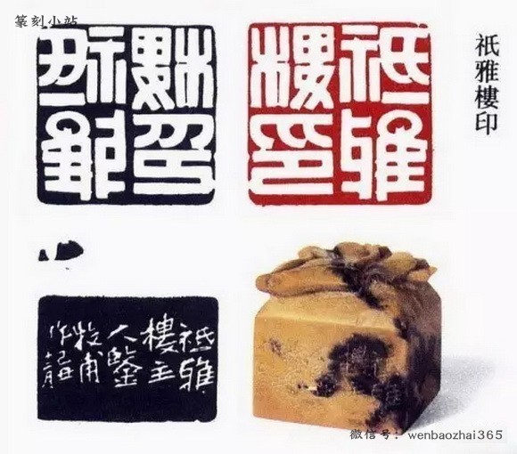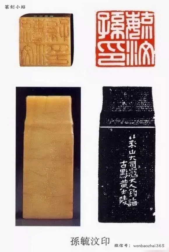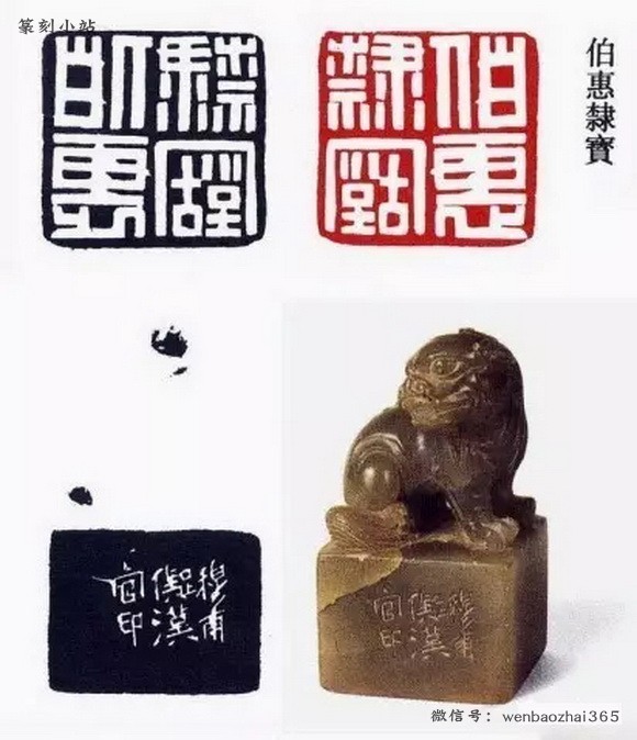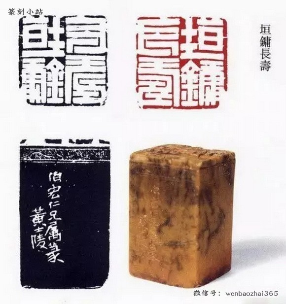 黄世陵早期是对浙派用功颇深的,后来在他第一次南下广州的时候,他对邓石如和吴让之的研究学习过程中他的刀法也为之一变,有切刀变为冲刀。但是后来他也尝试了不同的用刀,比如他的“伯鉴”一印,想必是在他参与石鼓文重刻工程的时候得到了启发,线条质感深得石鼓文的神韵。黄世陵在和他老师编订《十六金符斋印存》的时候,过目了大量的古代玺印,这是他冲破了流派印的局限,从中确定了审美取向。“光洁”“古气”逐渐从黄世陵的审美取向中凸显了出来。他的审美理想和赵之谦不谋而合了,于是他开始取法赵之谦的用刀。汉金文无疑可以满足黄世陵的审美趣味,而后来他对汉金文挺拔内敛韧性十足韵致的体会,也使他对赵之谦的作品提出了异议。这标志着这黄世陵对刀法以及线条质感追求的成熟,是对赵之谦的超越,这为他的篆刻创作定下了基调。正是因为黄世陵对各流派刀法的深刻体会,对不同质感的线条有过视野广阔的梳理,使他能够准确的将汉金文的质感表现出来。挺拔而凝练,刚中有柔,富有弹性,没有简单和单薄的不足之处。而这种线条又和先秦玺印的线条质感相似,从而满足了他在仿先秦玺印创作中的审美理想,他在光绪二十六年所刻的“宝彝斋”款说道:似汉凿铭,这一时期正是黄世陵印风成熟的时期,从中我们可以看出他的刀法线条和先秦玺印这一印式的完美结合。
