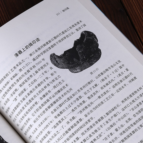 在《齐纨鲁缟,冠带衣履天下——楚国和秦国的染织业和官署》(即《染织篇》)中,开头便以“先秦染织业小史”行文,从新石器时代写起,介绍了河姆渡文化刻有蚕俑的象牙盅,浙江吴兴钱山漾遗址发现的麻织品及丝织品,山西夏县西阴仰韶文化遗址出土的半个经人工割裂过的茧壳,北京市平谷县上宅、河北省正定县南杨庄、陕西省神木县石峁、辽宁省锦西县沙锅屯等遗址发现的陶蚕蛹或玉蚕,等等。再以妇好墓中出土的丝织品(其有五种名称:平纹绢、缟、缣、回纹绮、罗等),甲骨文中与纺织业有关的字(共计231个),列举殷商青铜器的蚕纹、《诗经》中有关妇女采桑养蚕的诗句、荀子所著《蚕赋)》……。此外,在文中配以精美图片,其中包括了明代宋应星《天工开物》里花楼机的画面,从视觉上便于读者解读。凡此种种,包罗万象,博古通今,让人感觉绝非一本单纯介绍玺印篆刻的读物,而是一本关于先秦历史的大百科全书。