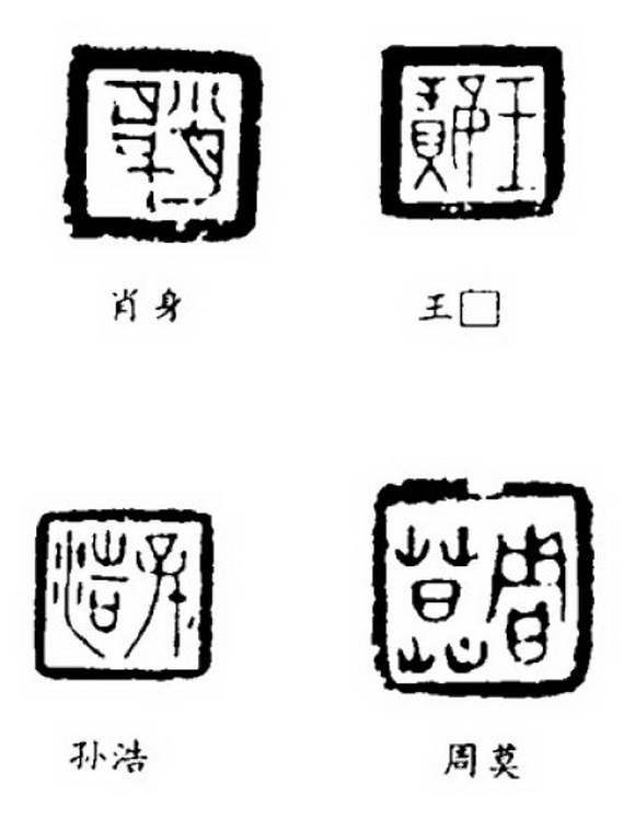 这里刊出的“肖身”、“王□”、“强泪”、“公孙敛”、“孙浩”、“周莫”、“司马爱”、“石□”等私壑,都是粗框细文的格局,采取以粗树托细的处理手法。“肖肖身”、“王□”的框栏要比其印文粗好几倍,在这样的情况下,印文就显得格外的俊丽精华,耀眼醒目。