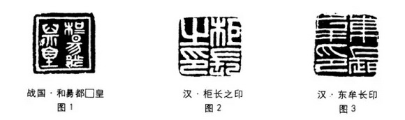 古玺“和易都□皇”(图1),竖向留红被突出,以强调印面秩序,形较自由,有松散之嫌,依赖边框将印面团聚。