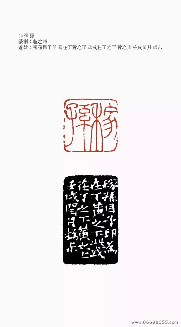 九月十四日自刻“押字印”,同月为魏稼孙刻“鉴古堂”、“鹤庐”(次年八月添款)。