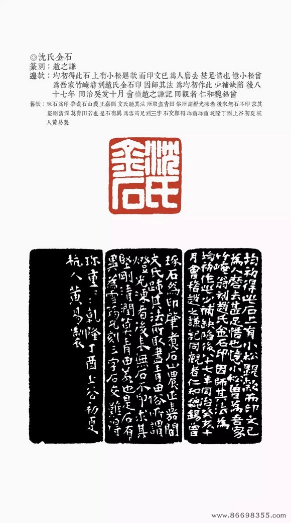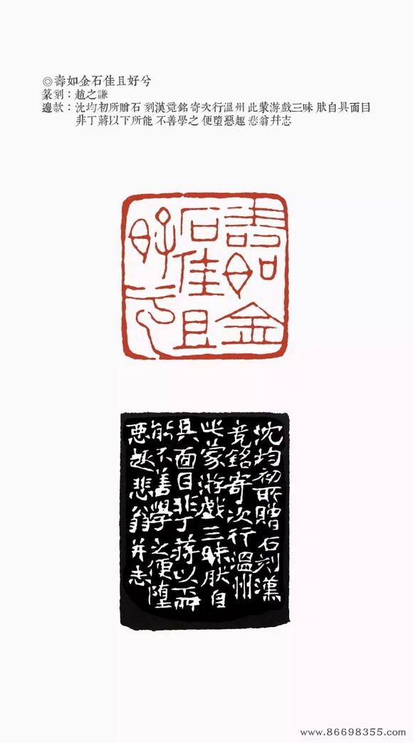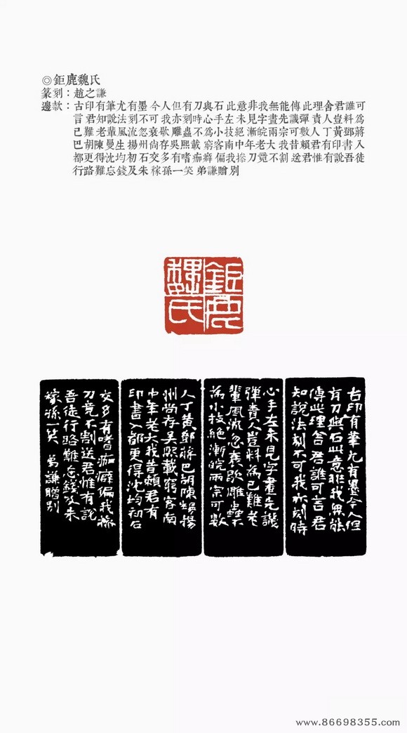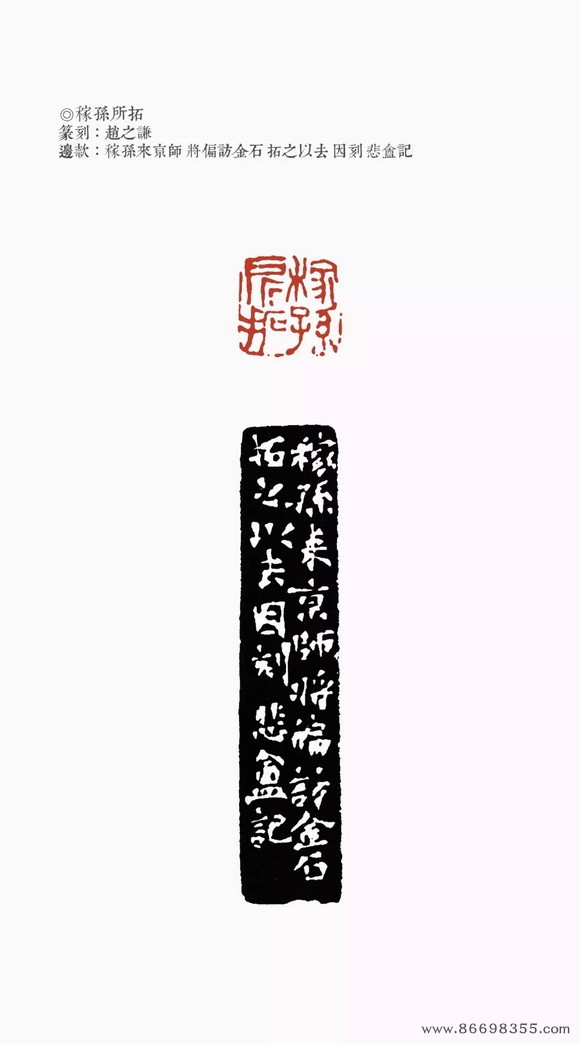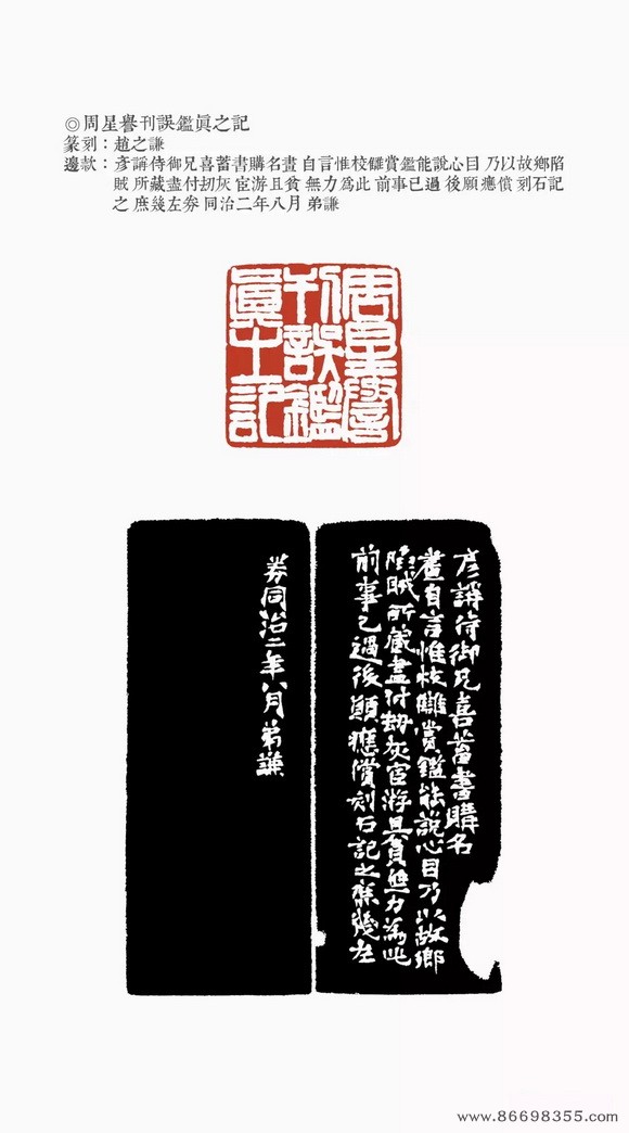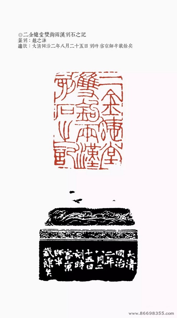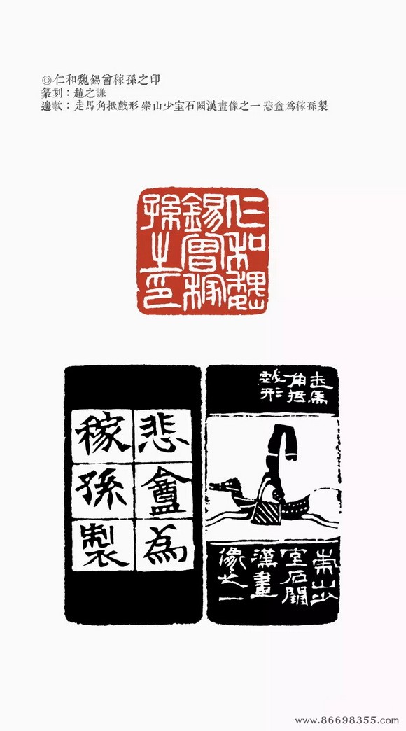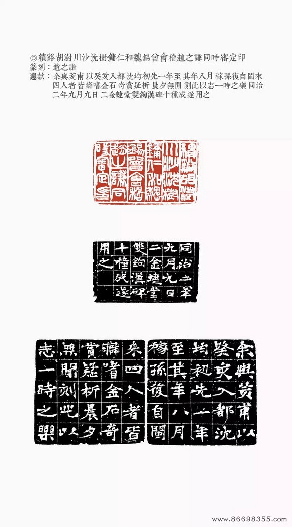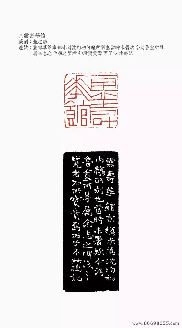 约是年刻印“仁和魏锡曾稼孙之印”、“赵氏撝叔”、“灵寿华馆”(光绪丙子冬补款)等。