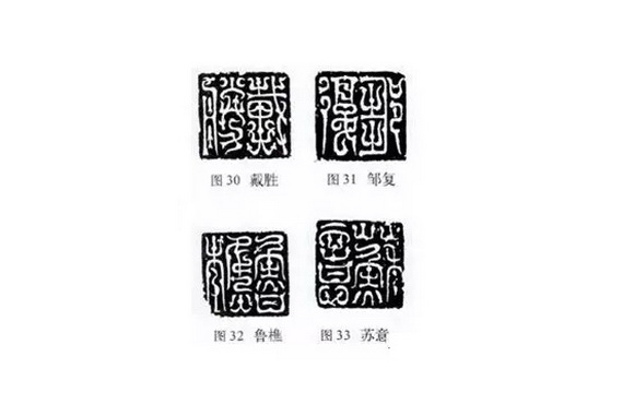 2.邹复(图31) 这是一方抽象的汉鸟虫篆玉印风格的作品。