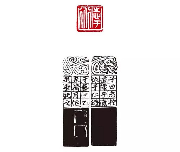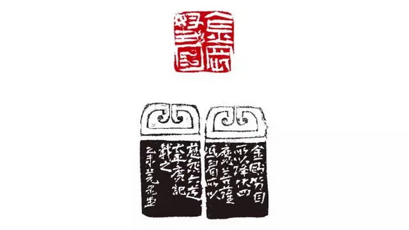甲骨文入印是没有特定的对应参照物,不像金文的对应参照物是古玺,缪篆的对应参照物是汉印,小篆的对应参照物是唐宋印和明清流派印一样。但从甲骨文线条排列的规律分析:由于甲骨文是刻在不规则的龟甲和兽骨上的,其笔画用横、直等长短线条组合,间或一两曲线(斜线)连接,线条细劲挺拔,随骨铺字,一任自然而意趣天成。通过对这些规律的分析,我们不难看出甲骨文的章法上和古玺的章法有着很多的相同点。