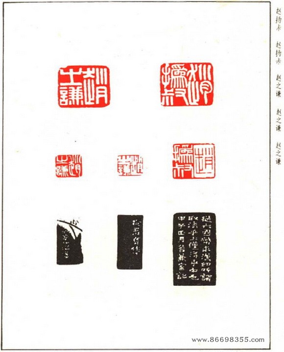 初学浙派篆刻印谱推荐,赵之谦印谱,取材广阔意境清新 《赵之谦印谱》作者赵之谦的篆刻初学浙派,进而于秦汉玺印、宋元朱文、皖派篆刻均有深邃的研究。他从邓石如使用各体篆文刻印得到启发,广泛地将秦权诏版、汉碑篆额、钱币、镜铭等篆体入印,取材广阔,意境清新,刀法简练而能传神,突破了秦汉玺印的程式;间用六朝造像、阳文款识亦为刻款提供了新的途径。 … … → 下载链接 (提取码:78y6) 印谱.教程.技法 - 分享 加微信获取:wenbaozhai365