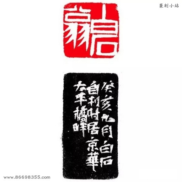 边款:甲子正月二日,白石山翁自刊,时居北京鸭子庙侧。
