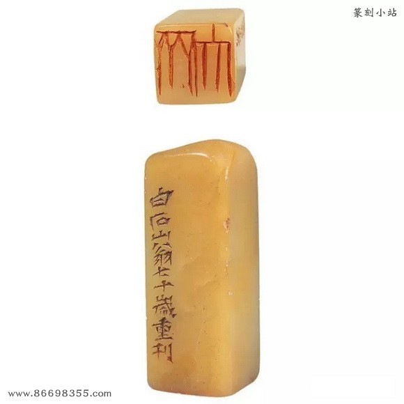 边款:此石乃友人为刻,儿辈背予磨去。今见之收回,刻此五字。癸酉,白石并记。