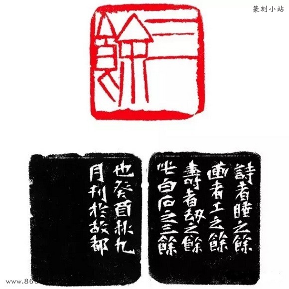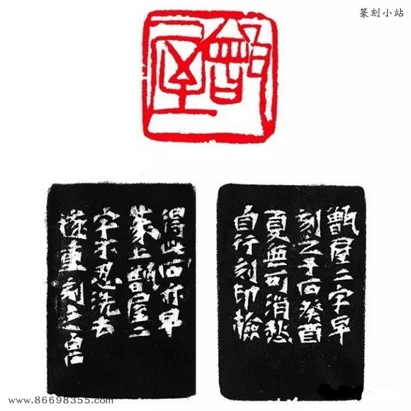 边款:“甑屋”二字,早刻之于石。癸酉夏,无可消愁,自行刻印。检得此石,亦早篆上“甑屋”二字,不忍洗去,遂重刻之。白石。